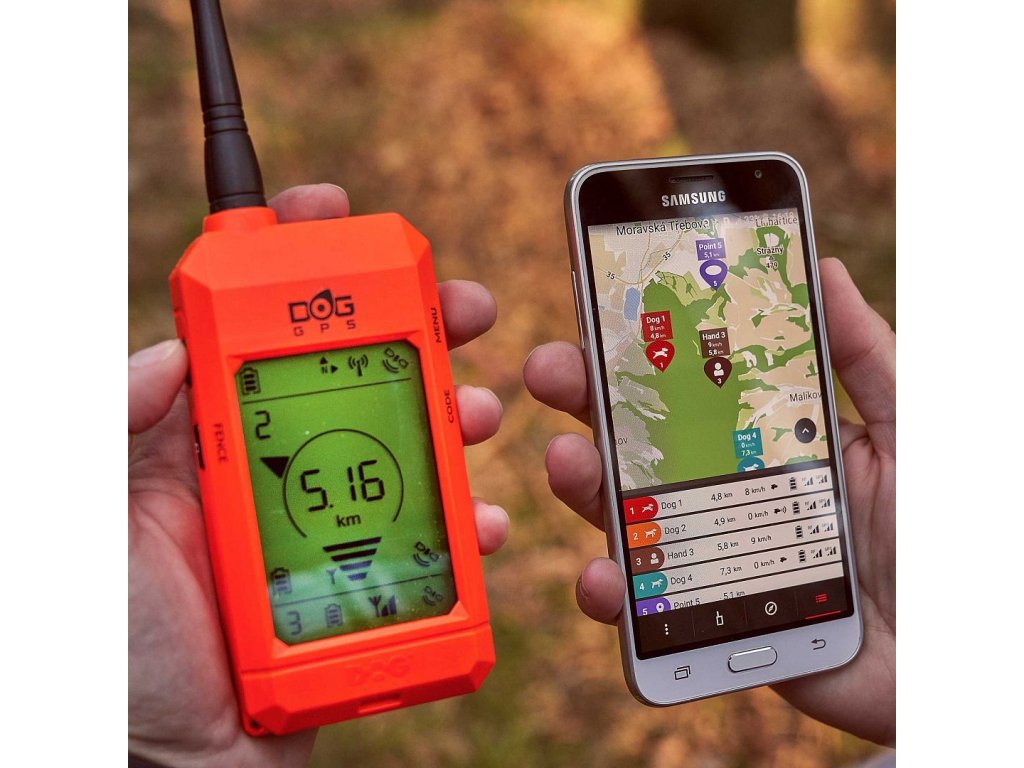 Prijímač možno pripojiť k mobilnému telefónu alebo tabletu s operačným systémom Android alebo iOS .Aplikácia umožňuje zobraziť všetky spárované zariadenia DOG GPS a ich podrobné informácie na mape. Online a offline mapy.
