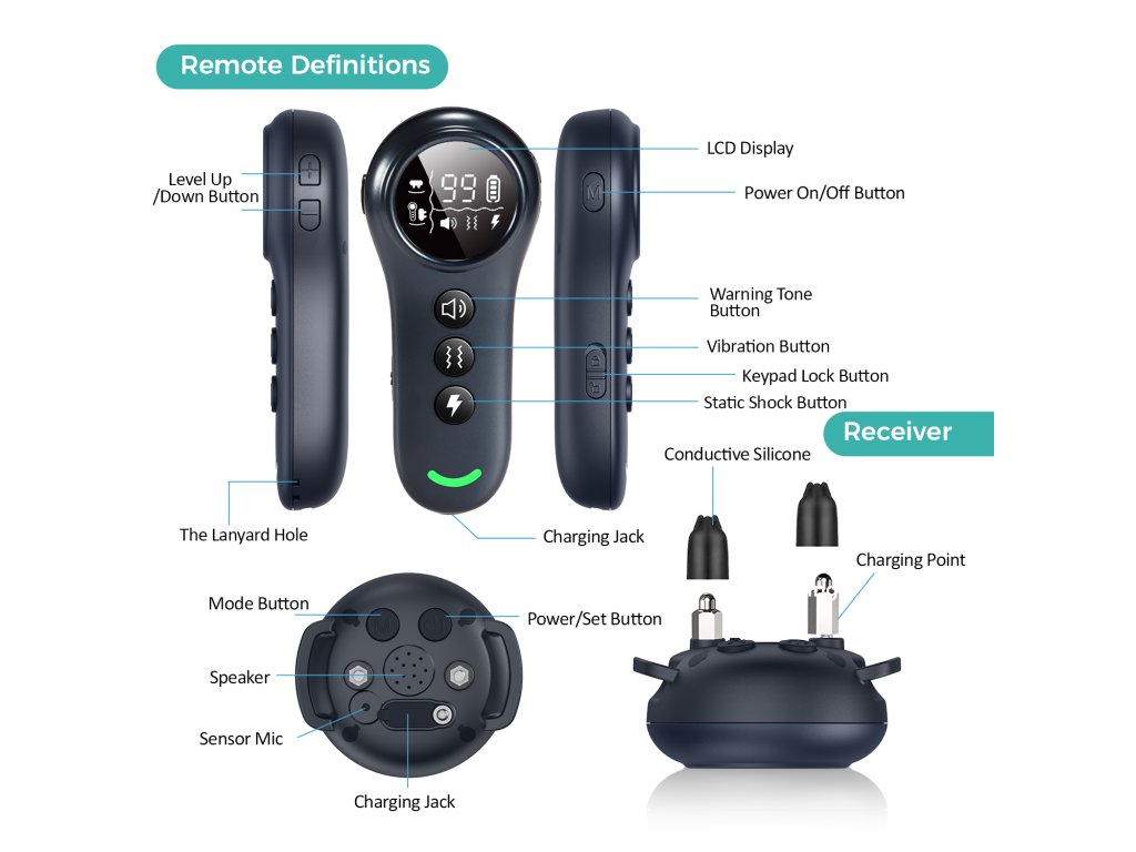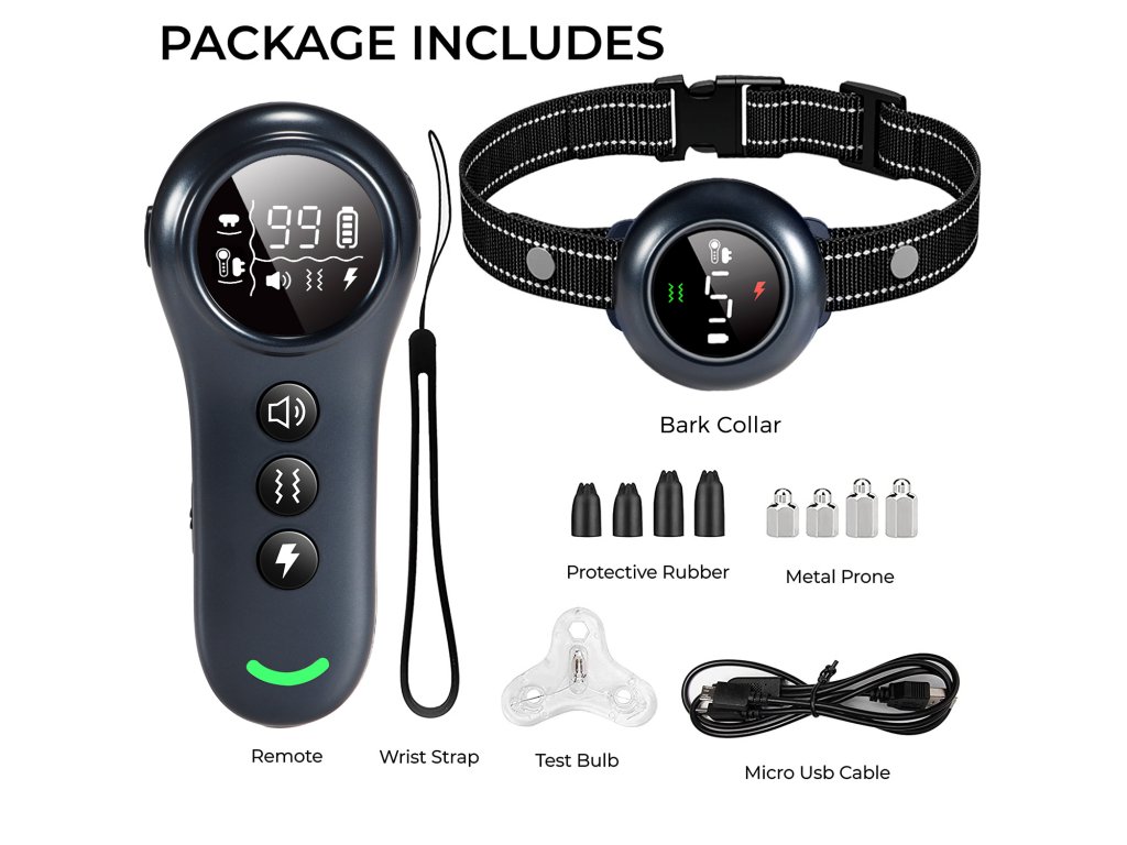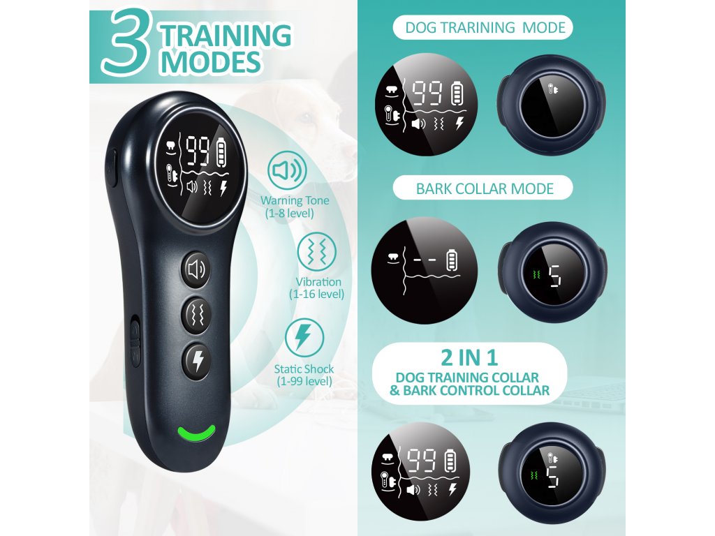 - Efektívny výcvik správania: Ponúka 8 úrovní zvukového signálu, 16 úrovní vibrácií a 99 úrovní elektrického impulzu.